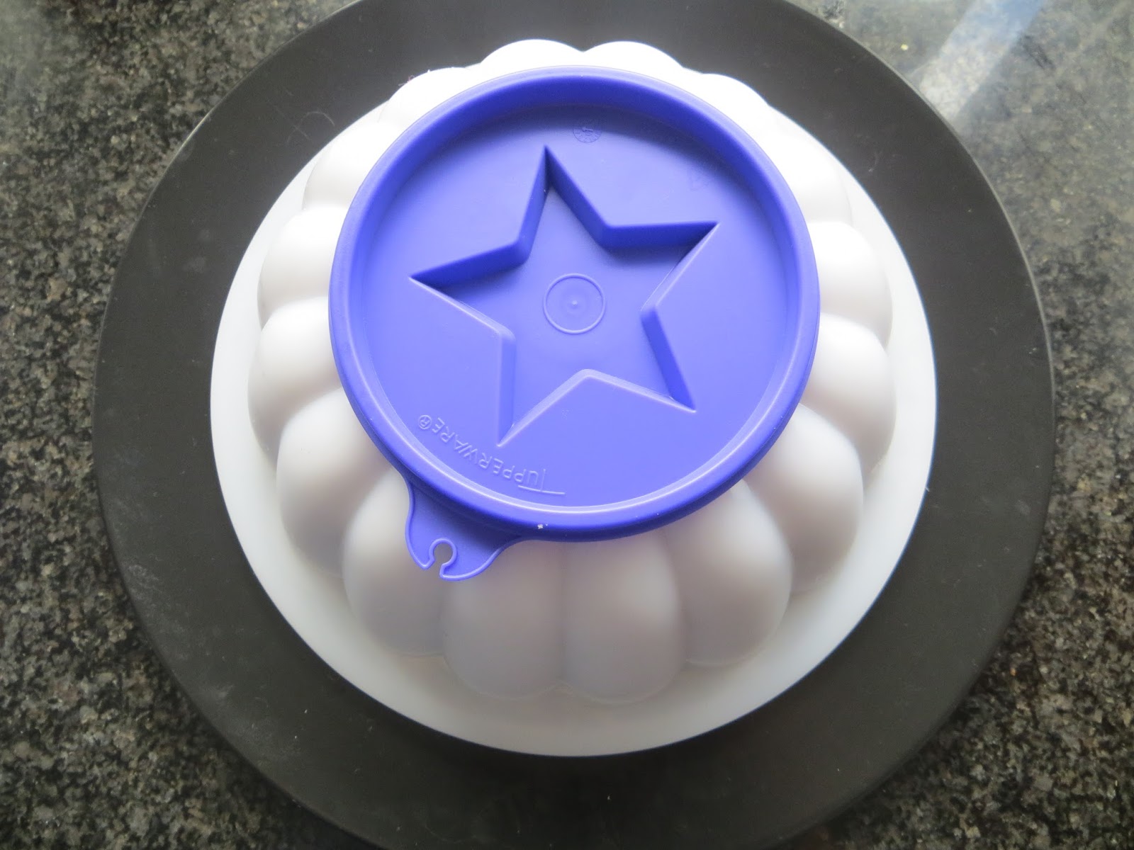 Decidi usar o bule da Tupperware, um instrumento do dia a dia que uso para aquecer o leite, para aquecer a água para não ter de usar o tacho. Sinceramente achei que seria mais prático.. e não me enganei! E, pois claro, usei também a espátula da Tupperware para envolver e a mágica para fazer a forma. E deu muito certo! Adorei o resultado e o Tó até já me pediu para repetir! hehehe